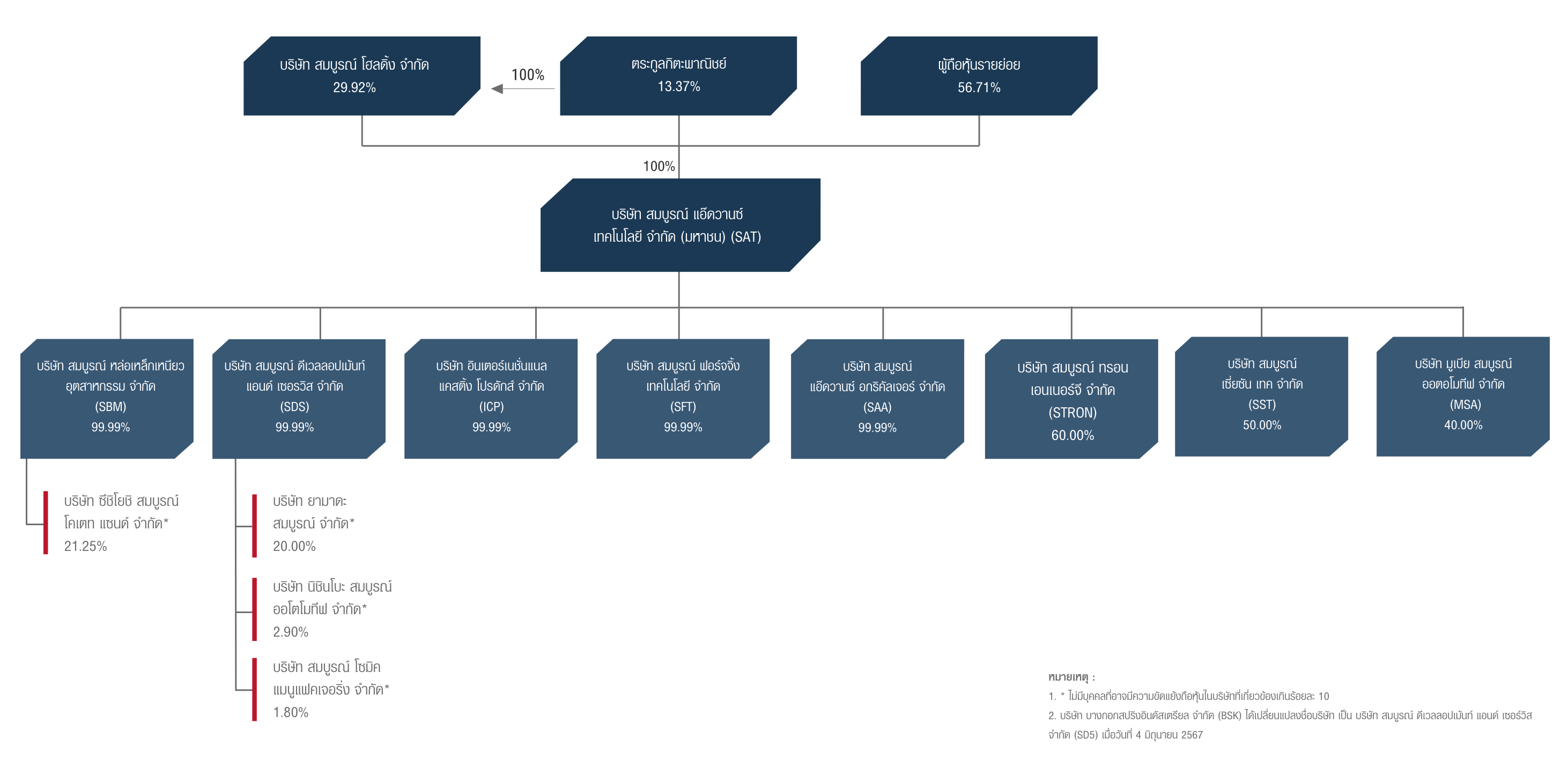 โครงสร้างการถือหุ้นของบริษัทสมบูรณ์ แอ๊ดวานซ์ เทคโนโลยี จำกัด (มหาชน)